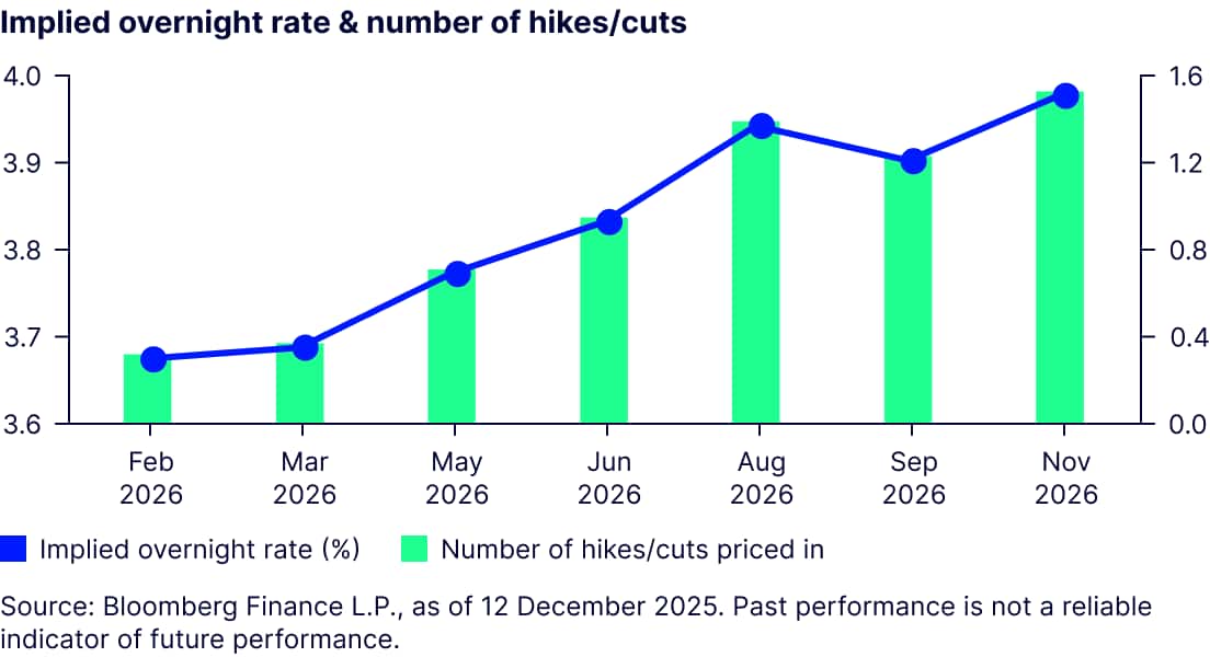 Looking ahead, we think the near-term trajectory for Australian rates remains skewed to the upside as persistent inflation and the RBA’s hawkish bias keep easing expectations firmly off the table. While the December meeting reinforced a “higher-for-longer” stance, the Board’s emphasis on data dependency means upcoming monthly CPI prints and labour market trends will be pivotal in shaping the path forward. We believe the resilient domestic demand, robust employment conditions, and sticky services inflation suggest risks remain tilted toward further repricing higher rather than cuts. Against this backdrop, front-end yields are likely to remain under pressure, with the RBA appearing firmly committed to anchoring inflation expectations, even if it means maintaining restrictive settings for longer.