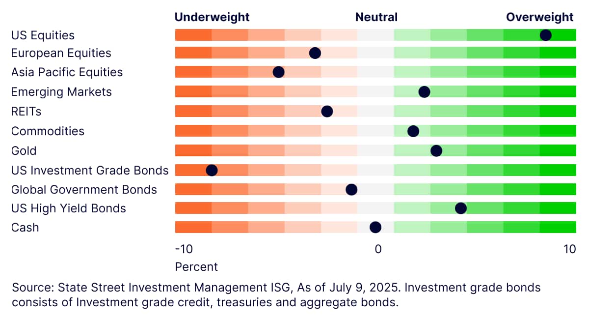 Each month, the SSGA Investment Solutions Group (ISG) meets to debate and ultimately determine a Tactical Asset Allocation (TAA) to guide near-term investment decisions for client portfolios. Here we report on the team’s most recent discussion.