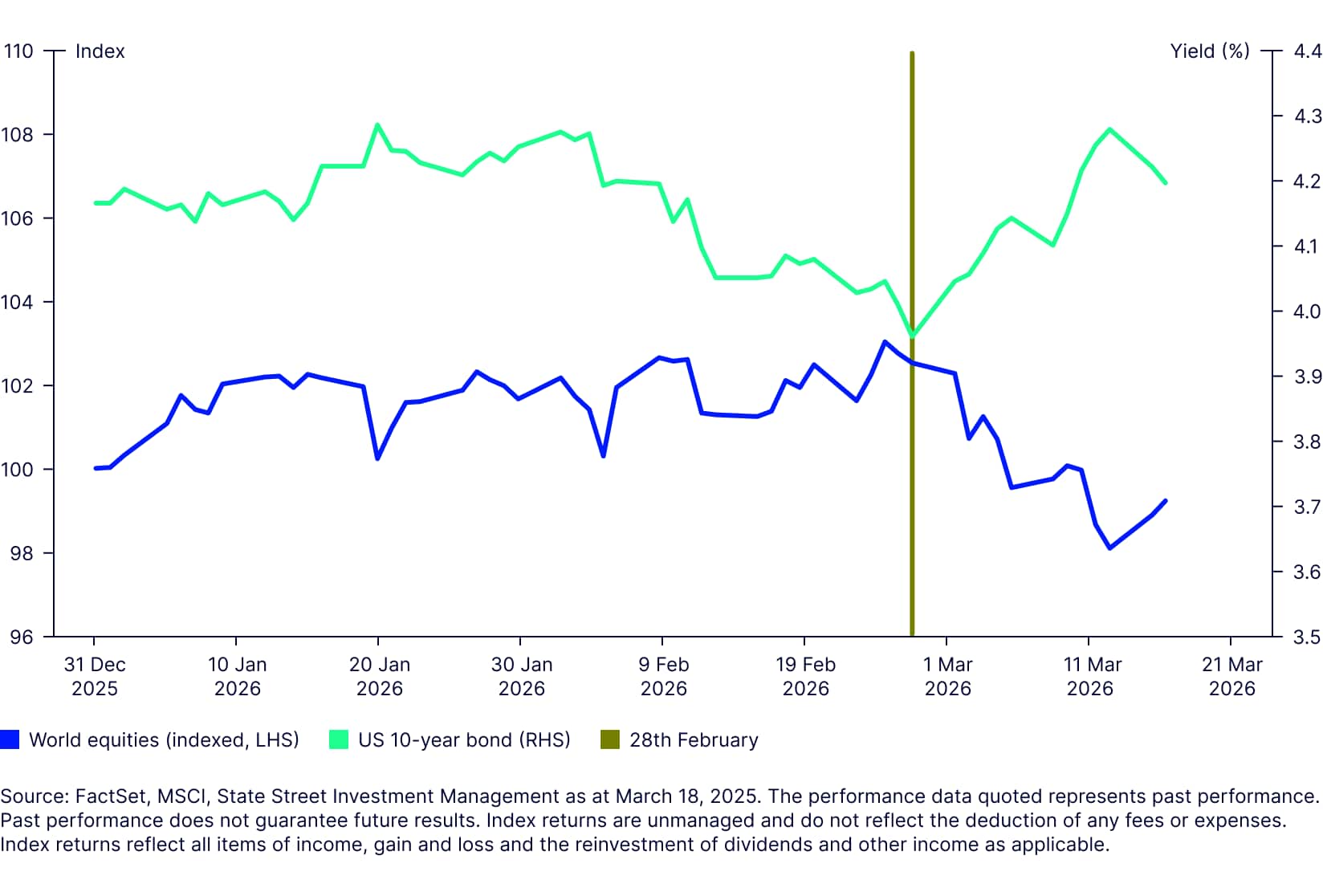 Even in the event of a relatively swift resolution to the current conflict, the economic impacts are likely to be more persistent than those associated with the short, sharp tariff pivot. From an economic—rather than humanitarian—perspective, the key uncertainty now centres on the duration of the conflict. This will largely determine the extent to which disruptions to energy supply persist, and the knock-on effects for inflation expectations, corporate confidence, and ultimately company earnings. These are questions for which we do not yet have clear answers, and may not for some time. Even if markets were to recover back to previous levels, the path from here is unlikely to be smooth and there will be lasting impacts, both economic and political which as yet are unclear.