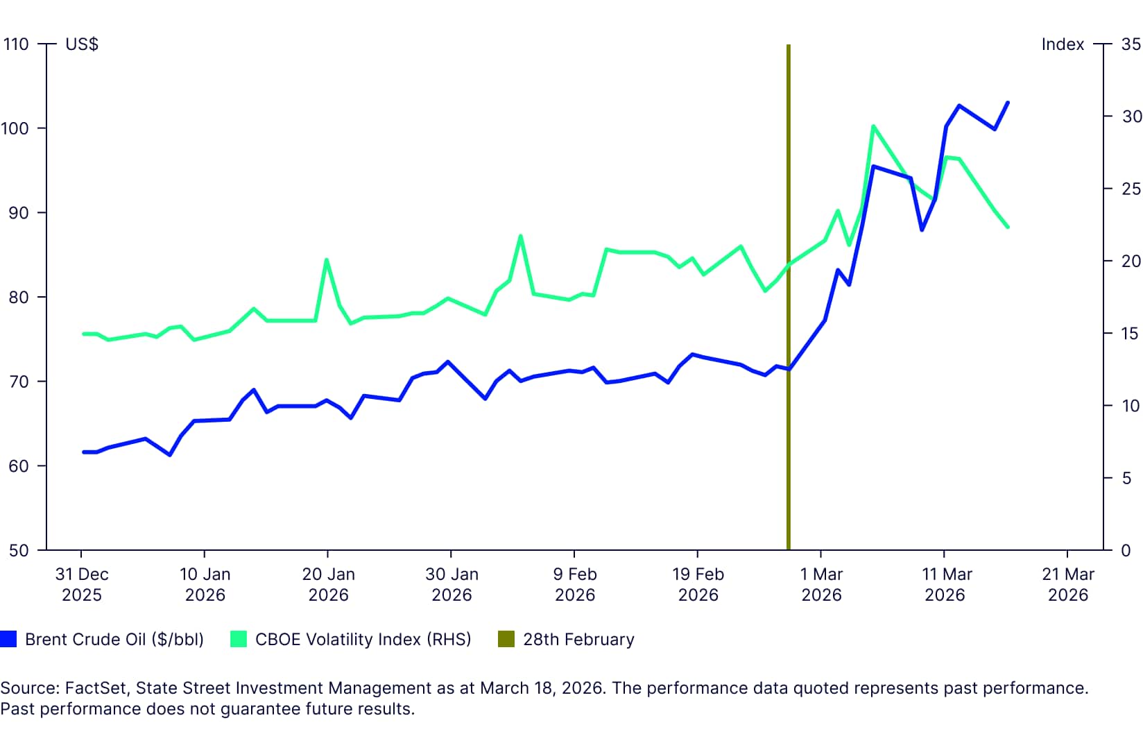 As depicted in Figure 2, market volatility also ticked higher, though the magnitude of the move was contained relative to the scale of the geopolitical shock. Energy stocks outperformed as oil prices surged above $100 per barrel, while investors reversed some recent positioning and gravitated back towards perceived safe-haven assets, including the US dollar and US equities.