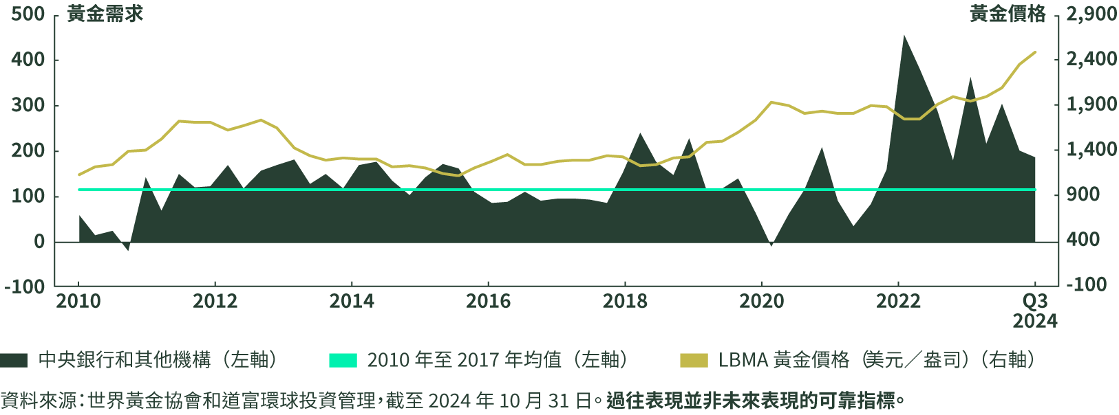 圖 2:中央銀行的非彈性需求支撐黃金的價值地位