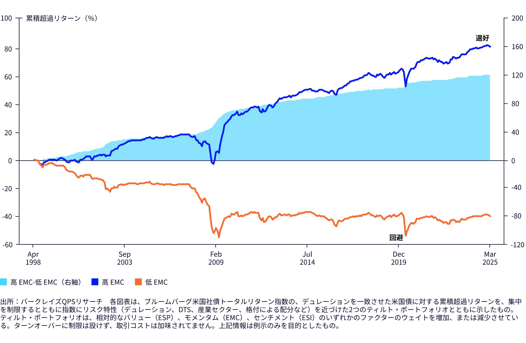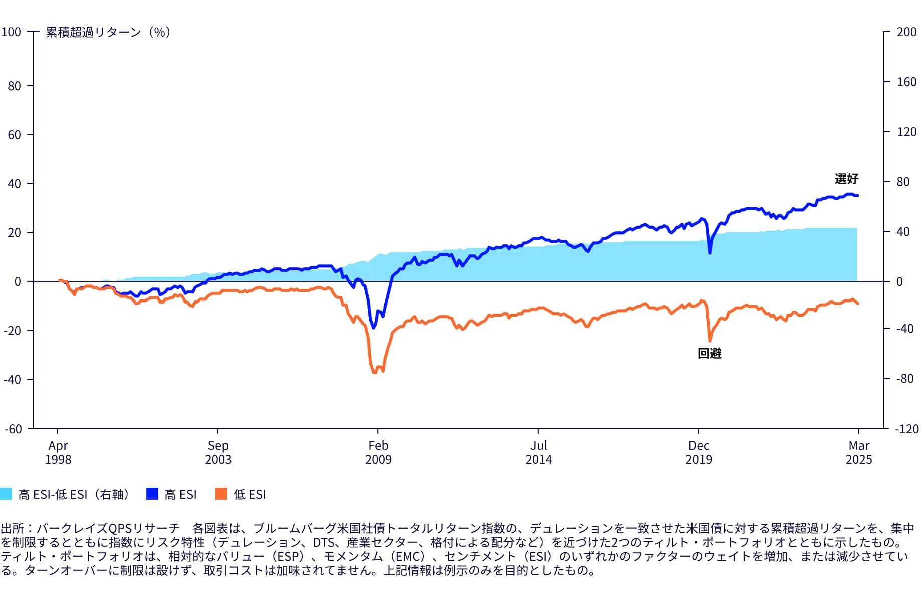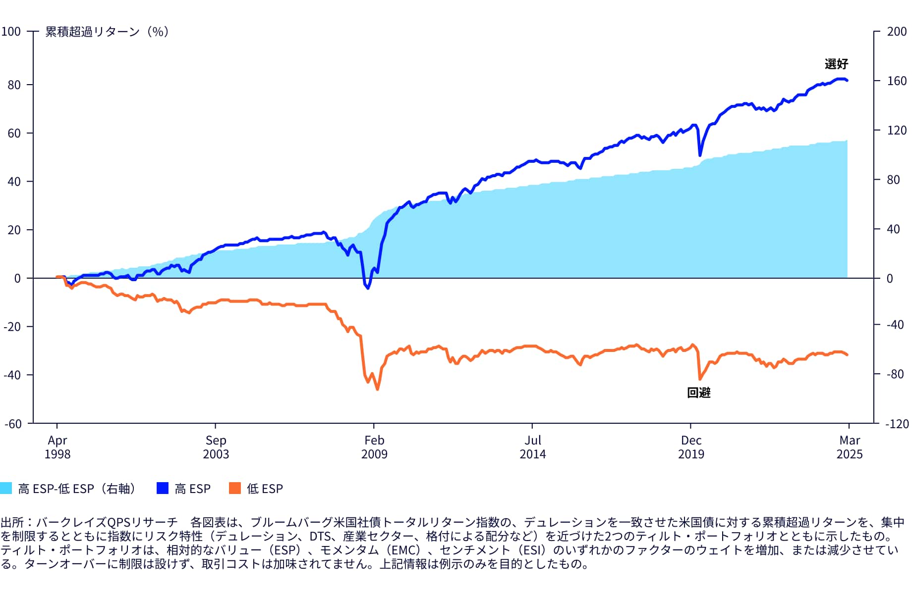本コミュニケーションは、投資に関する知識と経験が豊富であるとみなされるプロフェッショナルなお客様(EUの該当する規制当局が定義する適格カウンターパーティを含む)を対象としています。本コミュニケーションが関連する商品およびサービスは、そのようなお客様のみが利用できるものであり、それ以外のお客様(個人顧客を含む)は本コミュニケーションに依拠することはお控えください。過去の実績は将来のパフォーマンスを示す信頼できる指標ではありません。債券は一般に、株式よりも短期的なリスクやボラティリティは小さくなりますが、金利リスク(通常、金利が上昇すると債券価格は下落します)、発行体のデフォルトリスク、発行体の信用リスク、流動性リスク、インフレリスクを伴います。これらのリスクの影響は通常、長期債で顕著になります。債券は、満期が到来する前に売却または償還される場合、多額の利益または損失が発生する場合があります。上記のサンプル・ポートフォリオのリターンは仮定のものであり、上記の原資産の市場指数の割合に比例するリターンに基づいています。用いる計測手法はBloomberg US Corporate Indexを使い、バリュー・スコアを低いスコアから高いスコアの順に五分位に分け、リターンを測定するものでした。バリュー・スコアは、Barclays QPS が独自に開発した相対バリュー・スコアです。市場指数は運用されるものではなく、リターンを低下させる手数料や経費はかかりません。インデックスのパフォーマンスとサンプル・ポートフォリオのパフォーマンスはいずれも、SSGAが提供する特定のミューチュアル・ファンド、上場投資信託(ETF)、または商品のパフォーマンスを表すものではありません。SSGAはサンプル・ポートフォリオに示された戦略の口座または資産を運用していません。実際のパフォーマンスは、提示された仮定のパフォーマンスと大幅に異なる場合があります。過去の実績は将来のパフォーマンスを保証するものではありません。