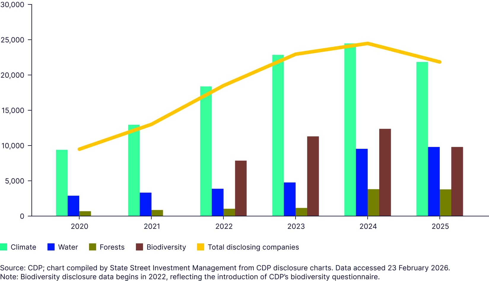 Figure 1: Number of companies disclosing to CDP by environmental theme