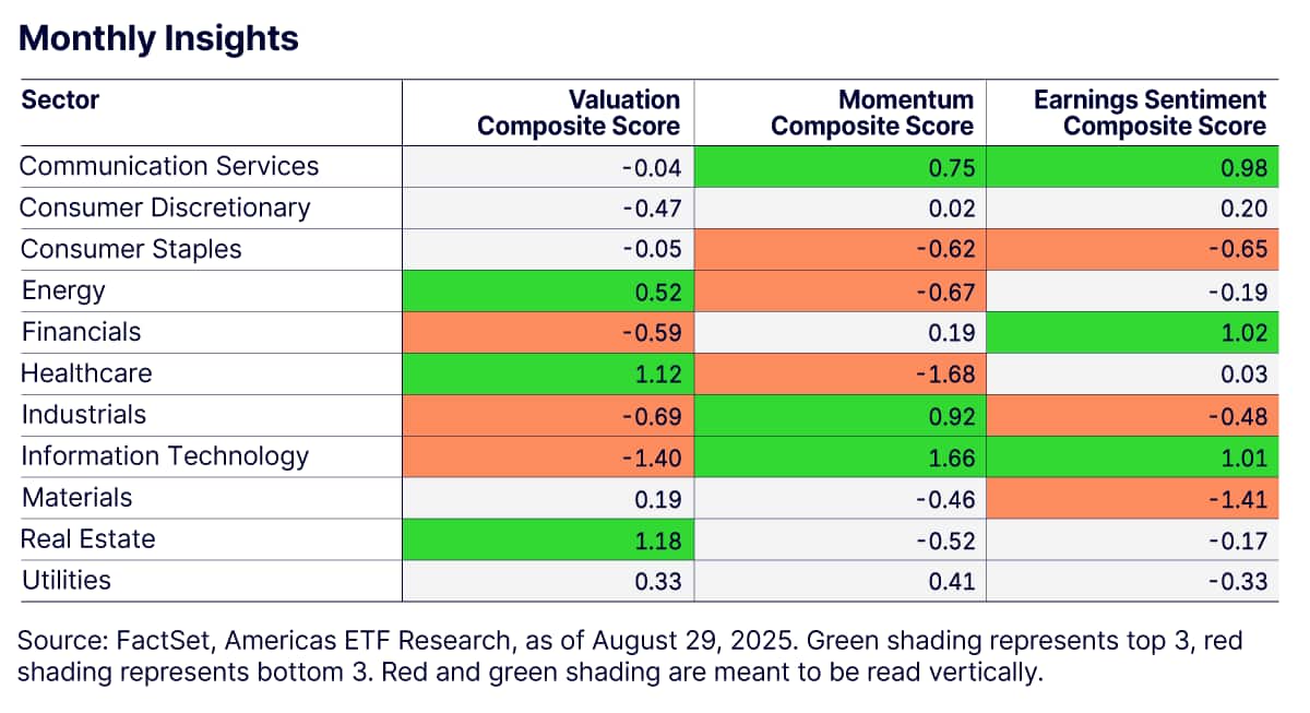 Compare sectors based on valuation, sentiment, volatility, and more.
