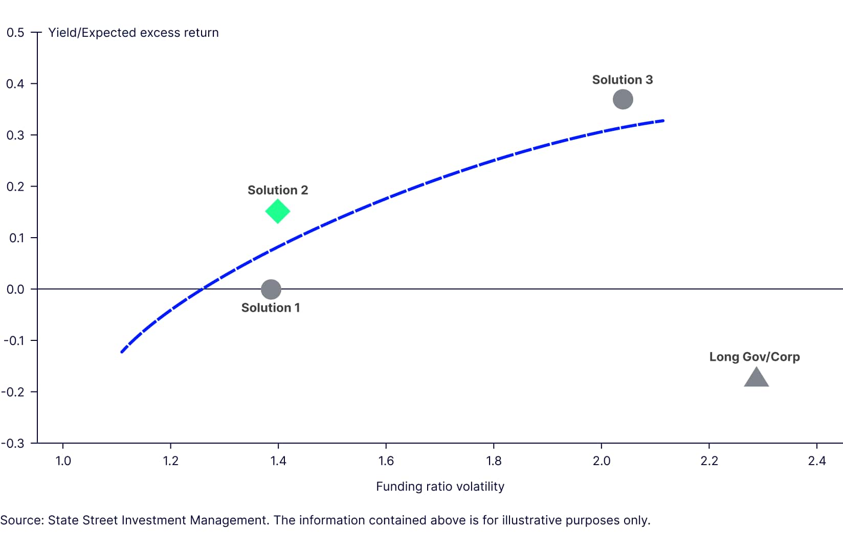 Based on this analysis, the company chose Solution 2 as the ideal benchmark. The 2-basis point increase in funded ratio volatility was, in their view, more than offset by the yield improvement over Solution 1. While Solution 3 offered the highest yield, the company did not believe the increase was enough to offset the higher funded ratio volatility.