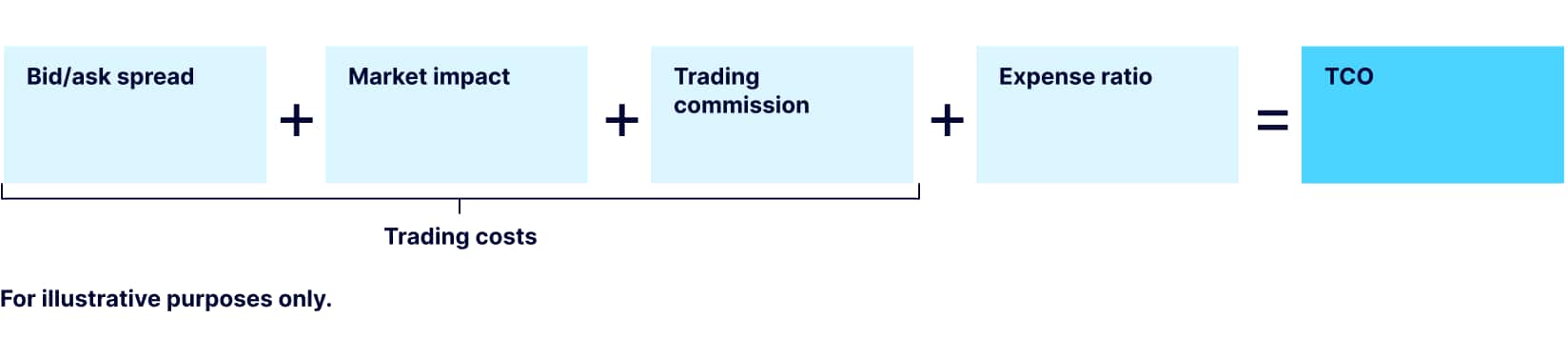 The TCO includes both holding costs (expense ratio) and trading costs (Figure 1). Importantly, a low expense ratio does not necessarily mean low trading costs, or ultimately the lowest TCO.