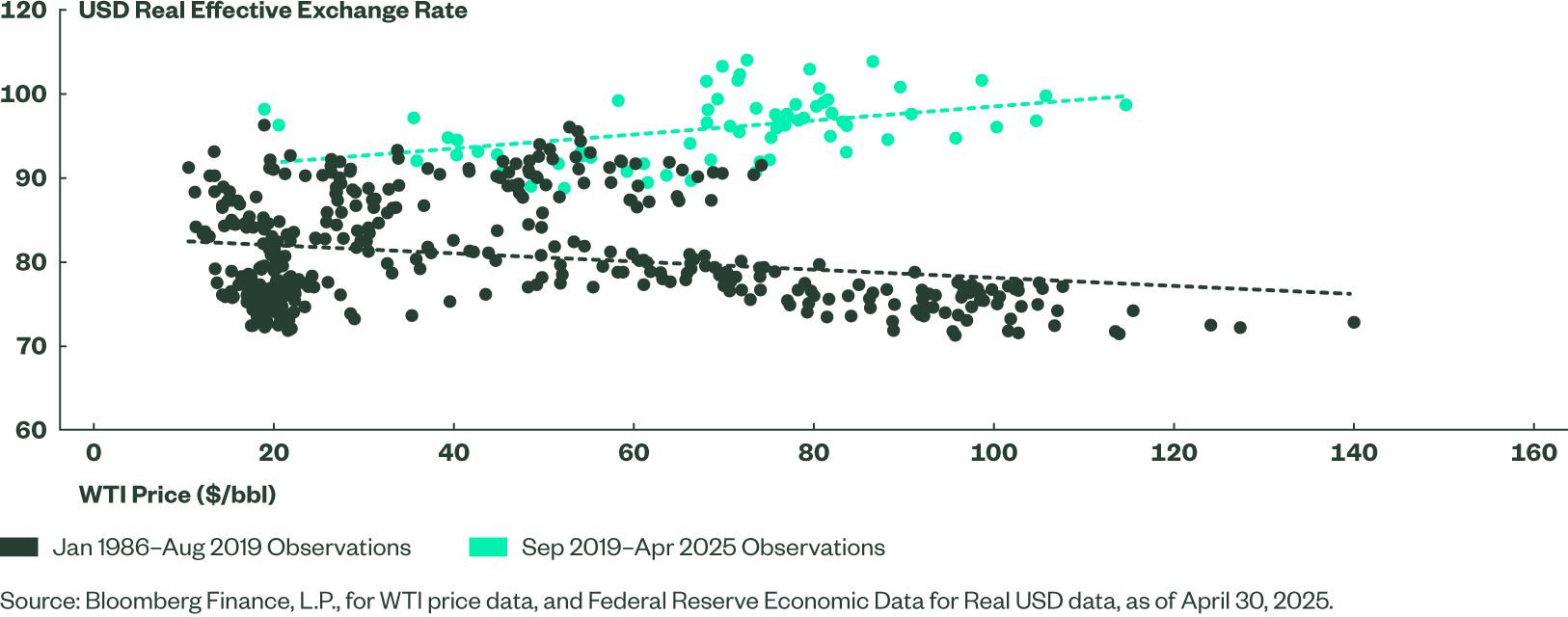 Figure 2: Oil-dollar Correlation Pre- and Post-2020